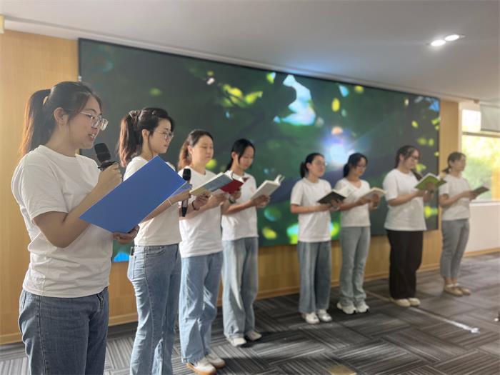 三味读书社围绕“我们为何而教”“我们如何更好地教”“我们最终走向何处”三大教育核心命题,开展一场“师者·书径”朗读会,九位教师用九部经典著作,进行了深刻而动人的回应。这不仅是一场声音的盛宴,更是一次思想的远航,清晰勾勒出一条教师专业发展与内心成长的升华路径。观微信息社的成果别具匠心,以吉祥物侨宝宝、谊囡囡为载体,利用AI技术生成了《侨谊童话故事》原创儿歌MV。成果背后,是教师们主动拥抱智能时代,积极发掘、熟练运用人工智能工具,将其创造性应用于幼儿教育实践的探索过程。侨韵艺术团则带来了一场充满活力的“童趣派对”。教师们选取了多首旋律优美、形象鲜明、深受幼儿喜爱的经典儿歌,从动作设计、队形变换到情感表达,精心编排了一个充满童趣、活泼可爱的儿童舞串烧,展现了极高的艺术素养与无限的创造力。行者研究中心聚焦“教育环境”这一要素,邀请小、中、大班三位教师代表,分享了基于儿童视角的班级环境创设的各项策略。他们用生动的案例阐释了如何创设赋予幼儿“熟悉感”、“参与感”、“成长感”的环境,体现了环境作为“第三位老师”的育人价值。